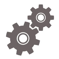 Engranajes y contramarchas de fundición, ejes octogonales, guías de seguridad y puertas de escape.