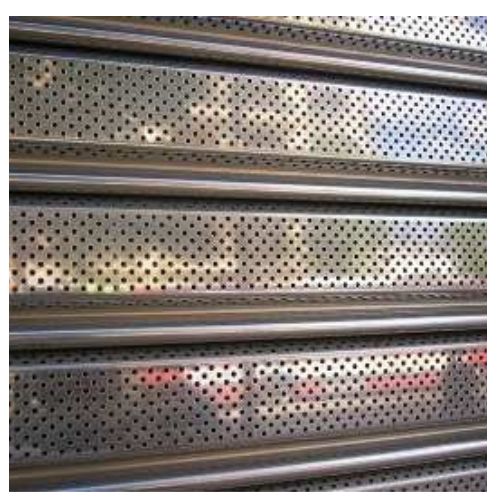 Cortina metalica microperforada galvanizada medidas : 2 m x 2 m + rollo manual